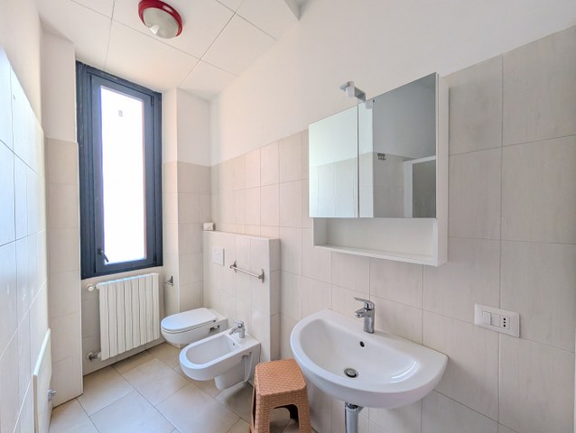 L’appartamento dispone di spazi comuni funzionali, tra cui un luminoso soggiorno con blocco cucina. La cucina è abitabile e super accessoriata, con piano cottura a induzione, forno, frigorifero, freezer e lavatrice, per garantire la massima comodità. I due bagni finestrati, entrambi con doccia, assicurano praticità per tutti gli inquilini. Dal soggiorno si accede a un terrazzo ideale per momenti di relax.