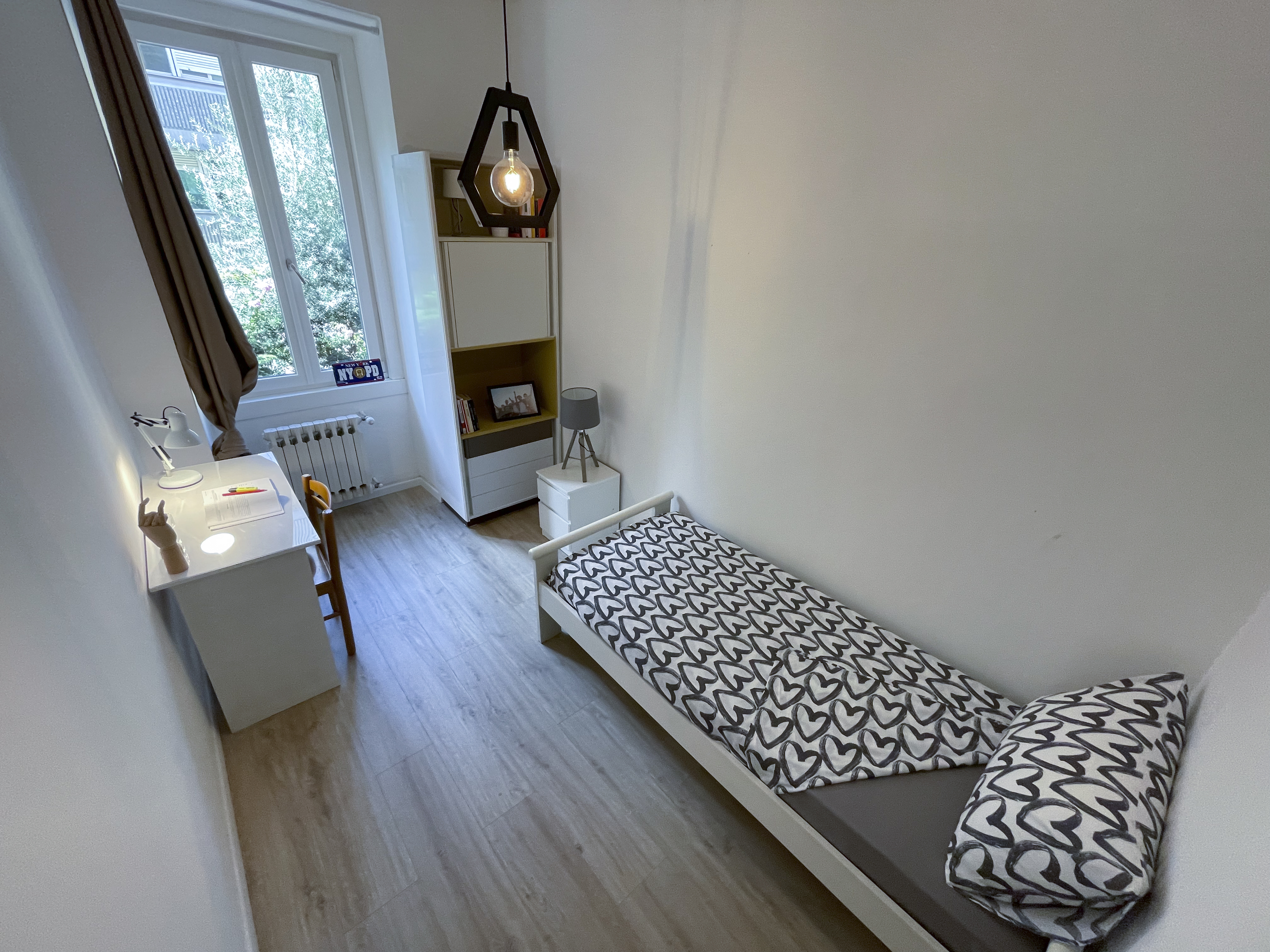 La camera proposta è arredata con letto singoli, ampio armadio a due ante e una scrivanie con sedia.